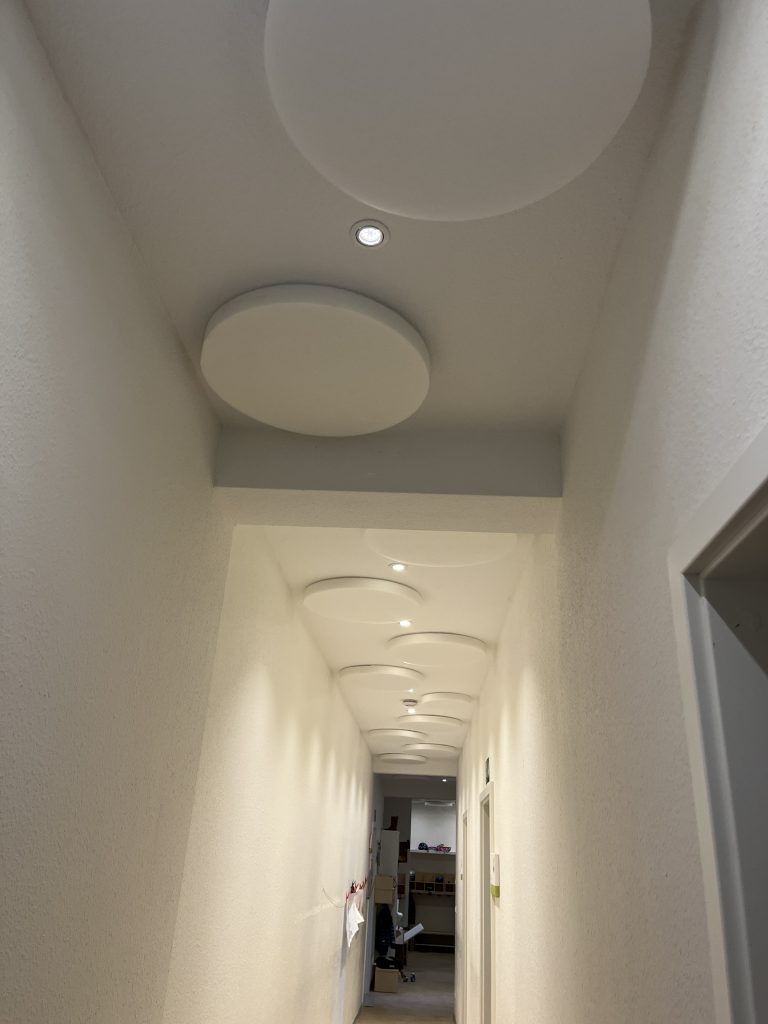 Es ist vollbracht – das Projekt Schallschutz ist abgeschlossen! Zwischen Weihnachten und Neujahr wurde unsere Kita ein ganzes Stück leiser. Weitere 140 Schallschutz Panele wurden in allen Gruppenräumen sowie im gesamten Flur an den Decken montiert.